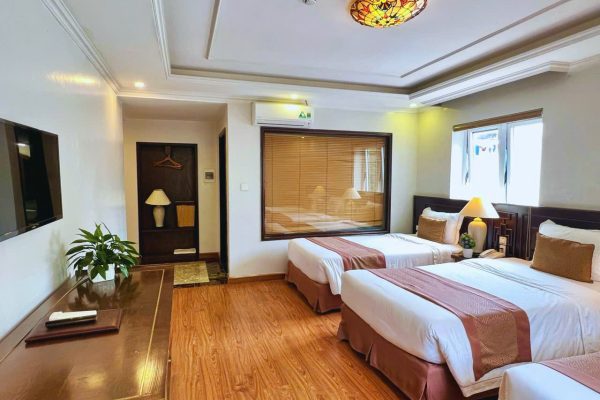 Deluxe triple view city Giá từ 32 $/đêm Room view View City Area size 30 m2 Giường 3 Triple bed 2 x Adult 1 x Child